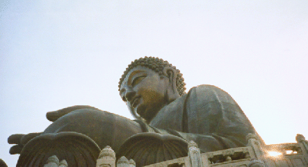 Blick hinauf zum gewaltigen Bronze-Buddha auf Lantau bei Hongkong - erstaunlicher Weise erst vor wenigen Jahren unter chinesischer Herrschaft gebaut. |
