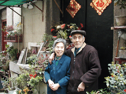 Seit 60 Jahren im gleichen Haus in einem Innenstadtviertel. Mit Blumentöpfen und Holzregalen haben sie sich ihren eigenen “Garten” geschaffen. |