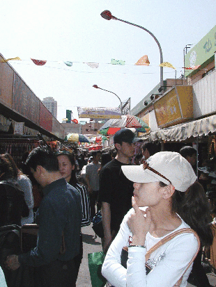 Auf dem Kleidermarkt wird sorgfältig nach trendigen Neuheiten gesucht. Hier bekommt man fast alles - aber fast nichts echt! |