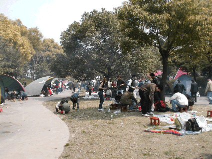 Ein Grillplatz auf Chinesisch - die ersten warmen Tage des Jahres werden von den Shanghaiern im Forest-Park begeistert begrüßt! |