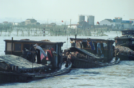 In langen Reihen werden die teilweise motorlosen Lastkähne, auf denen ganze Familien leben, den Kaiserkanal entlang gezogen. |