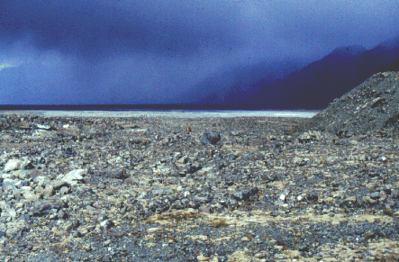 gewaltige Mondlandschaft der Gletschermoränen am Fuße des legendären Berges, der nichtmals 4000m hoch allein in den zwei Wochen die wir in Neuseeland waren 8 Menschen das Leben kostete.