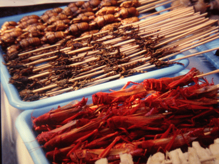Heuschrecken, Skorpione oder Seidenraupen gefällig? An Pekings Garküchen darf man nicht zimperlich sein. |