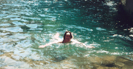 Seltenes Vergnügen in China - spontanes Bad im strahlend blauen Gumpen in den Gelben Bergen |